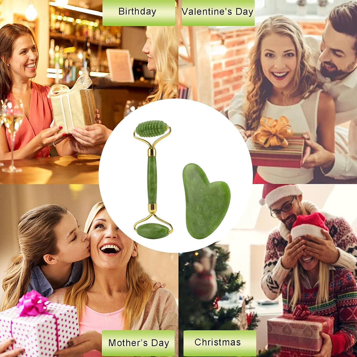 Durable & Ergonomic: Smooth, polished jade rollers are securely attached to a sturdy handle for a comfortable and seamless massage experience.